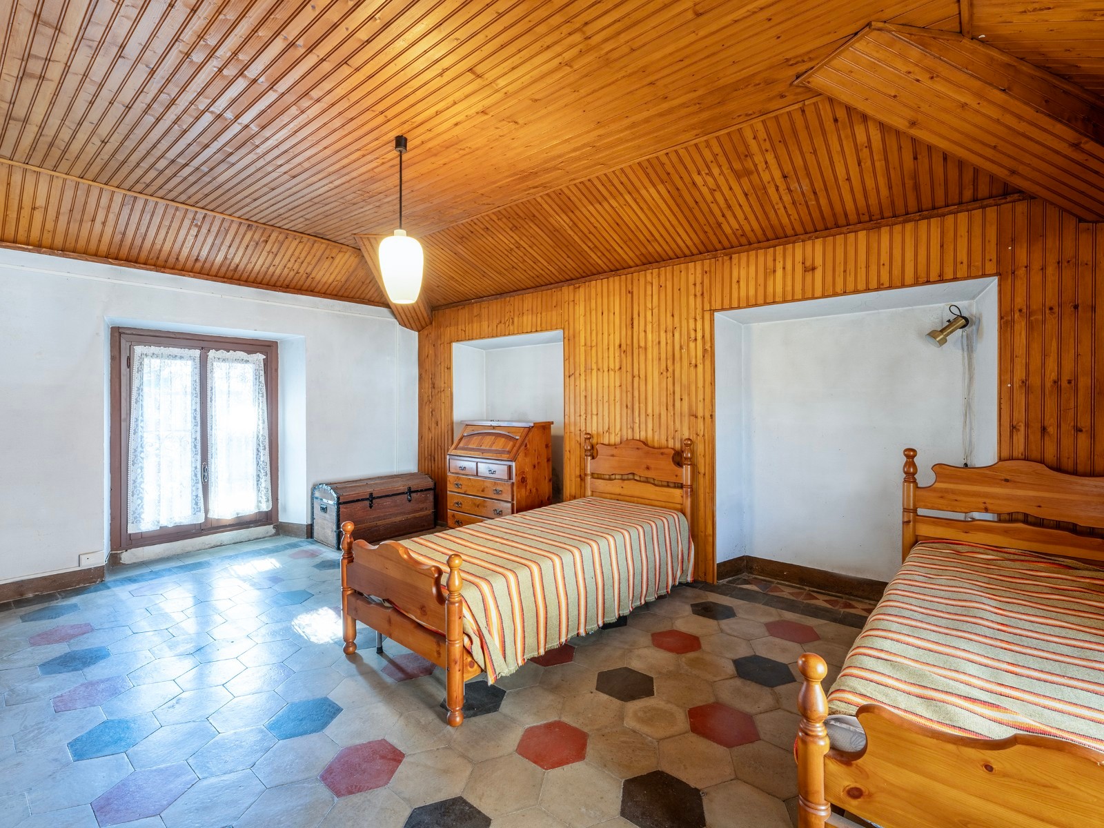 Os quartos principais encontram-se no primeiro andar e incluem um quarto principal amplo com casa de banho privativa, dois quartos adicionais e uma segunda casa de banho. O sótão convertido oferece mais três quartos e uma casa de banho, adequados para hóspedes, escritório ou espaço de lazer.