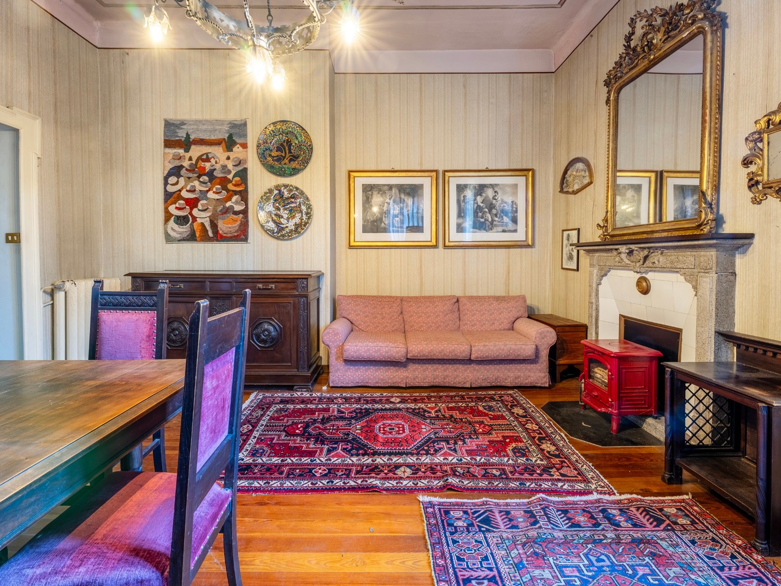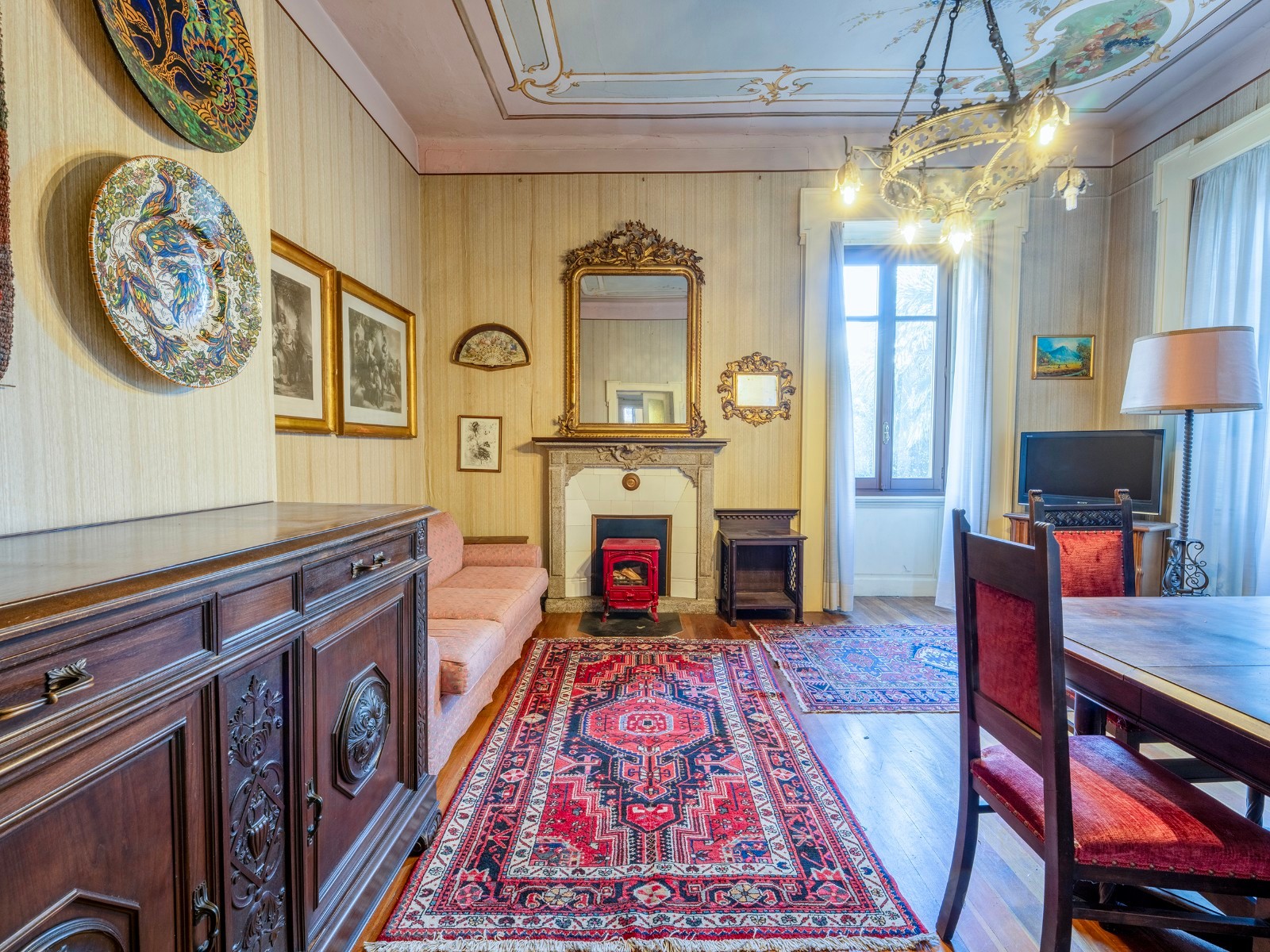 O rés-do-chão inclui hall de entrada, várias divisões com lareiras, cozinha habitável e lavandaria.