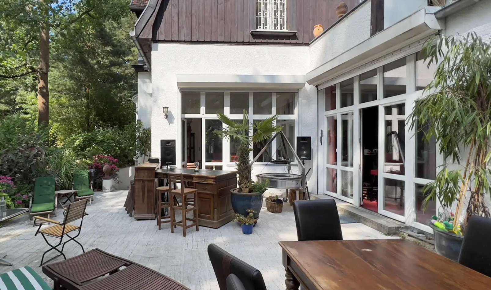 Um jardim desta dimensão é excecional em Berlim. Não se trata de um projeto, mas de um espaço consolidado: árvores maduras, privacidade total e serenidade. Um local onde se pode viver e sentir as estações do ano de forma plena.